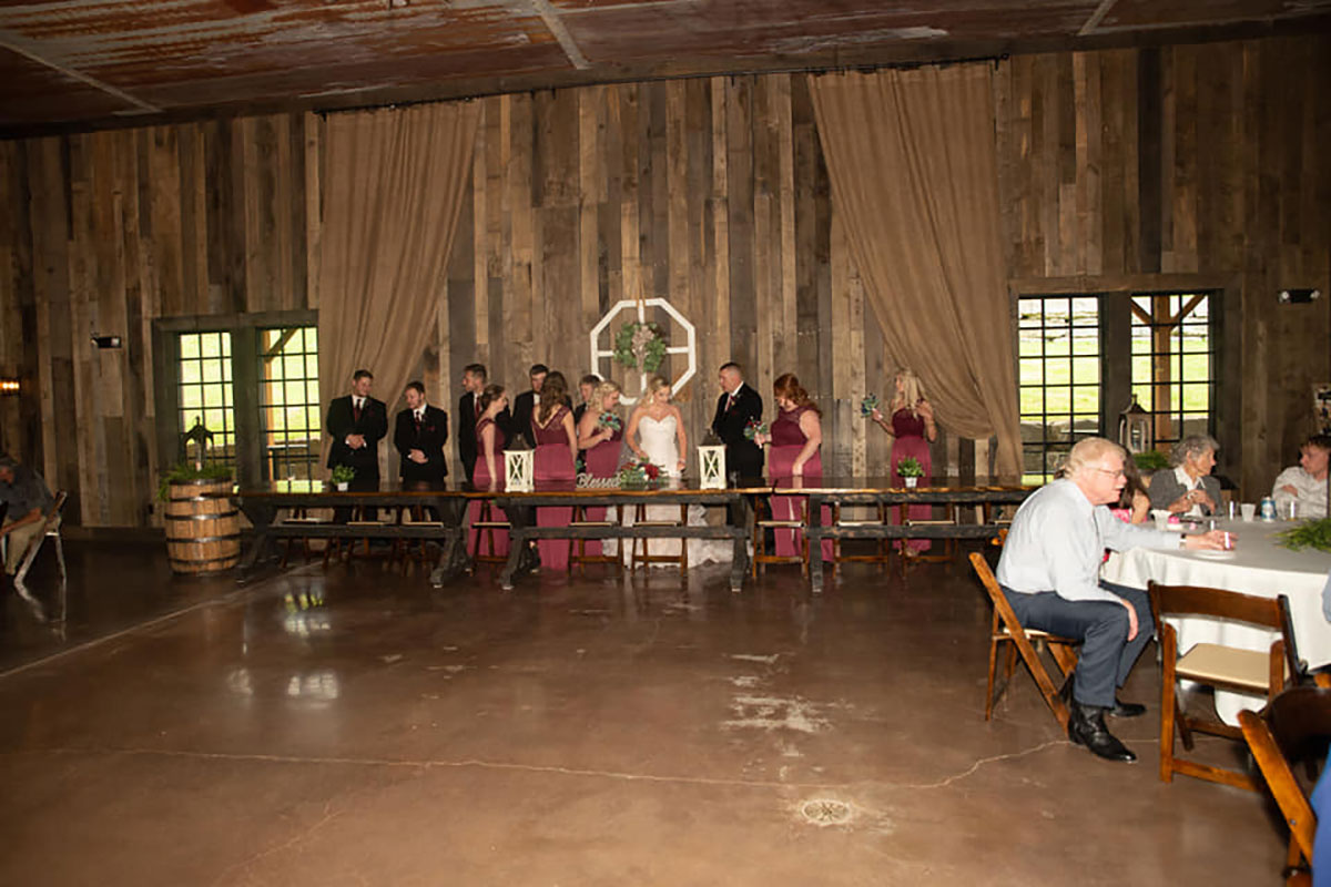 The Home Place at Valley View Wedding Package includes a 48 Hour Rental which gives ample time for your Wedding Rehearsal, Wedding Ceremony, Wedding Reception all at the same venue for one price. Our 7000 sq. ft. temperature controlled barn accommodates 240 guests comfortably and our Pinterest worthy beautiful bridal suite and super cool Grooms Room adds to your special day.